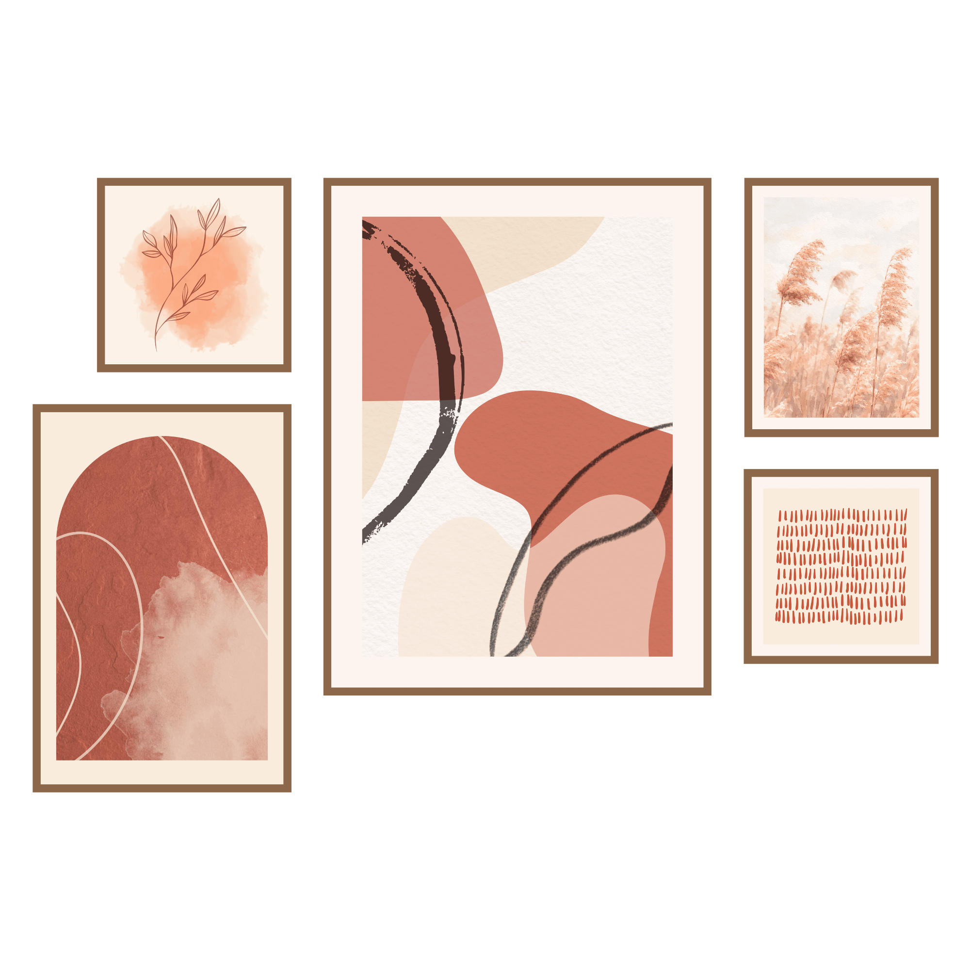 Inspirada nas tonalidades naturais da terra e nas texturas suaves dos tecidos orgânicos, a coleção Boho Terracota Moderno traz uma composição artística que equilibra calor, leveza e sofisticação. As formas orgânicas em terracota dialogam com fundos em tons de linho e areia, criando movimento fluido e uma estética contemporânea com influência boho minimalista. O efeito aquarelado adiciona profundidade e textura, remetendo à pintura artesanal e trazendo um toque artístico autêntico para o ambiente.